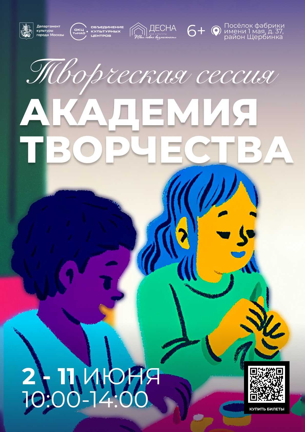 Дом культуры «Десна» приглашает на Летнюю творческую сессию «Академия творчества» для детей от 6 лет! В течение всей сессии детей ждут увлекательные мастер-классы, познавательные встречи, интерактивные занятия и незабываемая анимационная программа.
